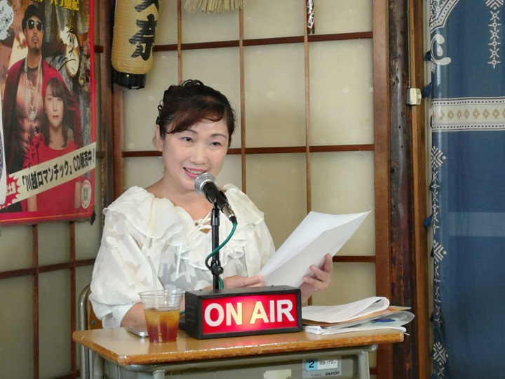 番組中、メッセージを読み上げているマツモトケイコ