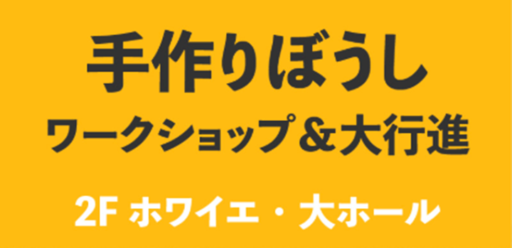 2階はフードとワークショップエリアとなり、手作りぼうしワークショップをはじめ、親子で参加できる体験をご用意。